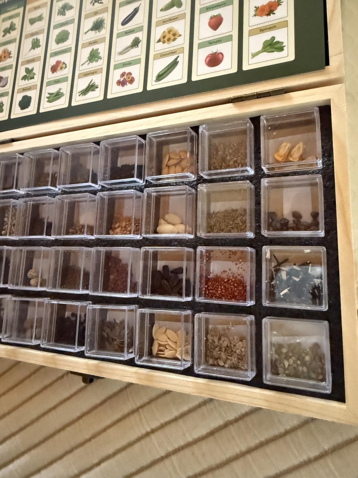The heirloom seed kit comes with 32 beautifully labeled acrylic containers that make organization a breeze. It's the perfect gift for gardening enthusiasts on birthdays, housewarmings, Christmas, and more.