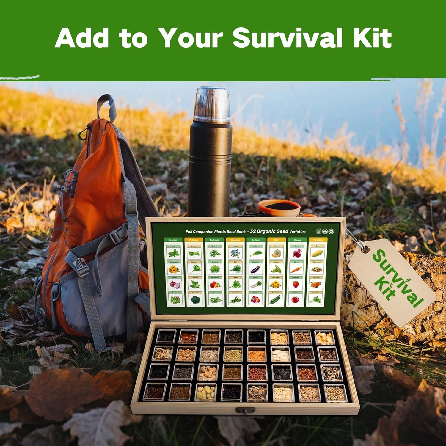 This seed bank offers 32 different varieties of open-pollinated seeds, including vegetables, fruits, flowers, and herbs. All seeds are Non-GMO, non-hybrid, and free from chemical treatments, ensuring your garden thrives naturally and safely.